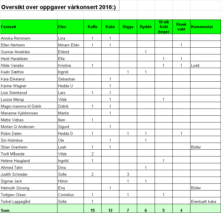 Dugnadsarbeid Takk til dem som virkelig legger sin sjel i å gjennomføre sine tirsdagsvakter med god mat og drikke. Gå til orkesterdrift for å laste ned dokumenter for dugnadsarbeid.